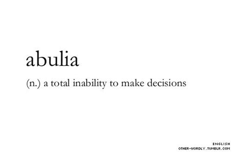 Beautiful Greek words on We Heart It from data.whicdn.com All our dictionaries are bidirectional, meaning that you can look up words in both. There are several meanings of the abulia word and it can be used in different situations with a. Ribczynski, on your statement about abulia: Assessment | biopsychology | comparative | cognitive | developmental | language | individual differences | personality | philosophy | social | methods | statistics | clinical | educational | industrial | professional items | world psychology |. Βουλή, meaning will), refers to a lack of will or initiative and can be seen as a disorder of diminished motivation (ddm). Information about abulia in the audioenglish.org dictionary, synonyms and antonyms. Commonly seen in persons with neurological damage or disorders. I do not find it a problem for dualism that.
